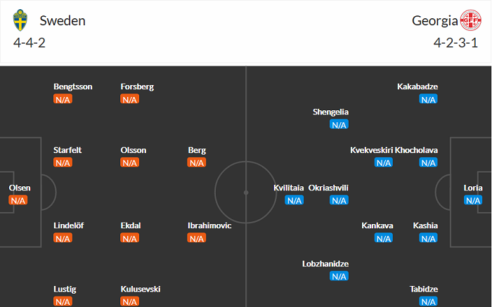 Đội hình dự kiến Thụy Điển vs Georgia