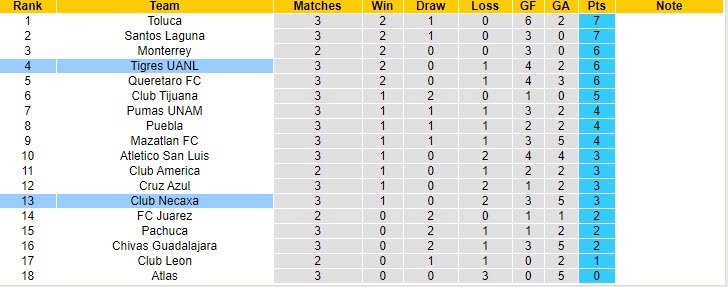 Dẫu vậy, sau 3 lượt trận vừa qua, Tigres UANL thi đấu tốt và họ nhận được kỳ vọng sẽ có mặt trong top 4, để giành vé trực tiếp có mặt ở vòng tứ kết tranh vô địch lượt về. Cần biết, Tigres UANL vừa thắng tới 2 và chỉ thua 1 lần ở 3 vòng đấu đã đá.