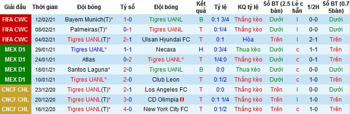Không tính 2 trận thắng và trận thua tại FIFA Club World Cup, Tigres UANL đang có được 3 trận thắng, 1 trận hòa và 1 trận thua ở 5 trận trước đó. Trên sân nhà đội bóng cũng đang bất bại ở 5 trận gần nhất với 4 trận thắng và 1 trận hòa.
