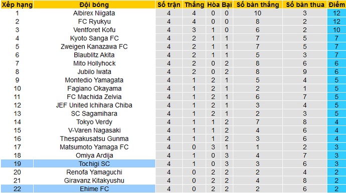 Sau 4 vòng đấu đầu tiên tại giải hạng nhì Nhật Bản, Tochigi SC mới có được 3 điểm và hiện đang nằm trong nhóm các đội cầm đèn đỏ khi đứng thứ 19 trên bảng xếp hạng. Tuy nhiên Tochigi SC cũng bằng điểm với 2 đội bóng đứng ngay trên và chỉ đang kém về chỉ số phụ.