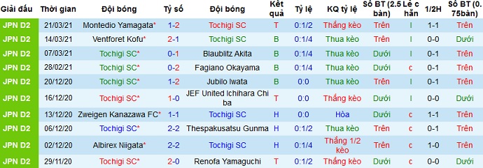+ Thống kê 10 trận gần nhất của Tochigi SC
