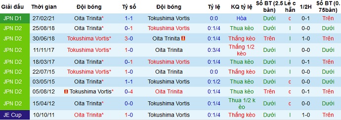 + Lịch sử đối đầu Tokushima Vortis vs Oita Trinita