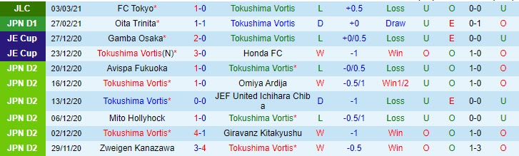 + Thống kê 10 trận gần nhất của Tokushima Vortis