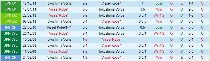 Phong độ và thống kê đối đầu Tokushima Vortis - Vissel Kobe gần đây: