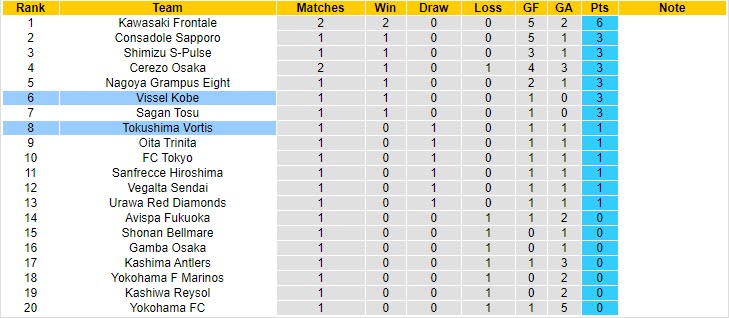Trong hai đội bóng mới thăng hạng của giải VĐQG Nhật Bản, Tokushima Vortis có khởi đầu suôn sẻ hơn Avispa Fukuoka. Cụ thể, họ đã có trận hòa 1-1 trên sân của Oita Trinita. Nhưng với nhiều người hâm mộ, họ vẫn còn đó sự hoài nghi về khả năng trụ hạng của Tokushima Vortis.