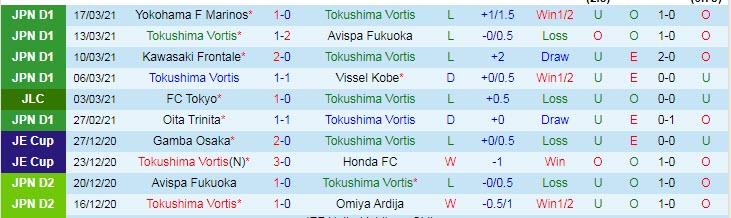 + Thống kê 10 trận gần nhất của Tokushima Vortis