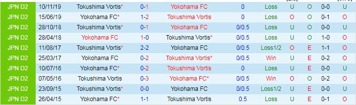 Phong độ và thống kê đối đầu Tokushima Vortis - Yokohama FC gần đây: