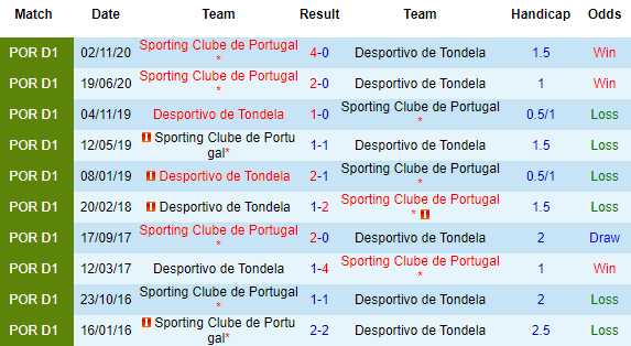 + Lịch sử đối đầu Tondela vs Sporting Lisbon