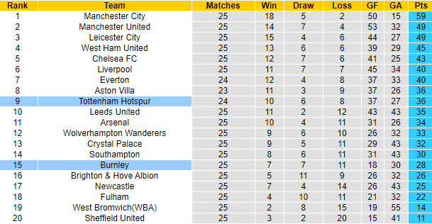 Phong độ và thống kê đối đầu Tottenham vs Burnley