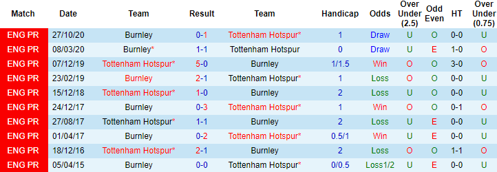 Tottenham bất bại cả 8 lần tiếp đón Burnley trước đây trên sân nhà. Tuy nhiên điều đáng chú ý là ở 8 trận đấu này, Spurs đều chấp từ -1 1/4 đến -2 theo kèo châu Á. Trận đấu sắp tới chỉ số handicap trước giờ bóng lăn chỉ dừng lại ở mức 1 hoà.