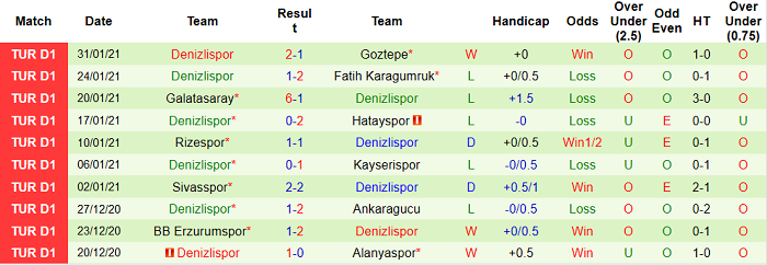 - Thống kê 10 trận gần nhất của Denizlispor