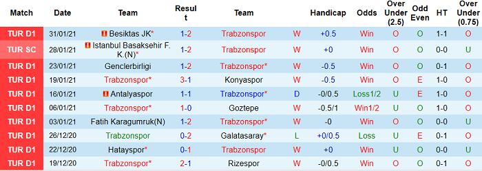 - Thống kê 10 trận gần nhất của Trabzonspor
