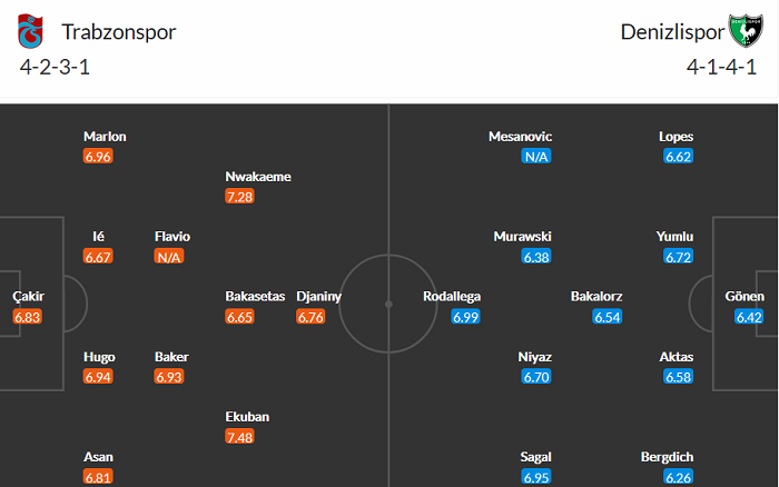 Đội hình dự kiến Trabzonspor vs Denizlispor