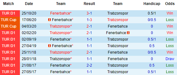 Nếu nhìn vào màn trình diễn thời gian qua thì Trabzonspor đang cho thấy sự ổn định cao hơn. Tính ra thì cả 8 trận gần nhất, Trabzonspor toàn thắng về chuyên môn và họ cũng không hề thua kèo châu Á (thắng tỷ lệ 7 lần, hòa kèo 1). Phong độ của Trabzonspor là ấn tượng hơn rất nhiều so với Fenerbahce.