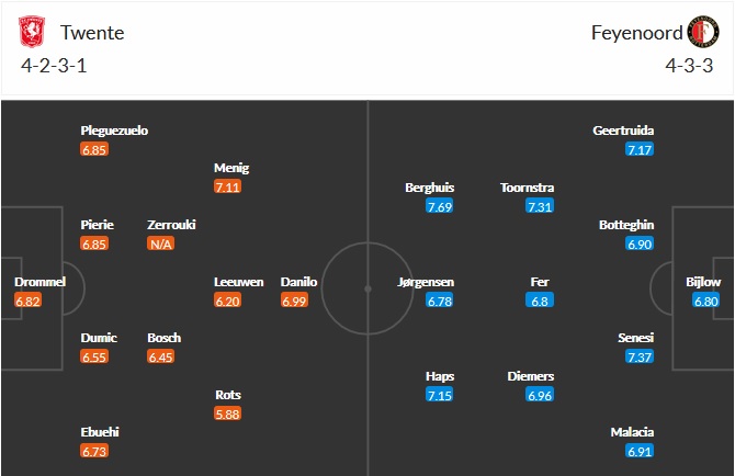 Đội hình dự kiến Twente vs Feyenoord