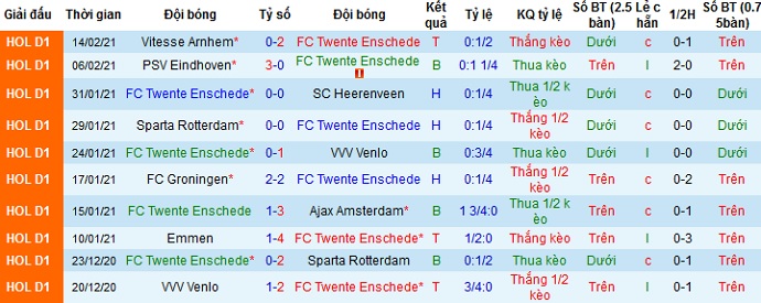 + Thống kê 10 trận gần nhất của Twente