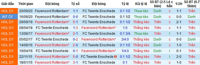 + Lịch sử đối đầu Twente vs Feyenoord