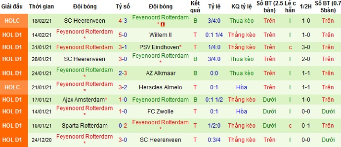 + Thống kê 10 trận gần nhất của Feyenoord