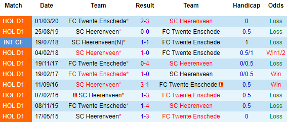 + Lịch sử đối đầu Twente vs Heerenveen