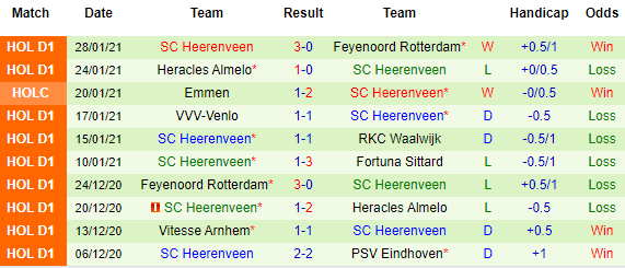 + Thống kê 10 trận gần nhất của Heerenveen
