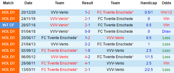 + Lịch sử đối đầu Twente vs Venlo