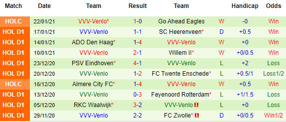 + Thống kê 10 trận gần nhất của Venlo