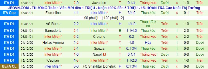 + Thống kê 10 trận gần nhất của Inter