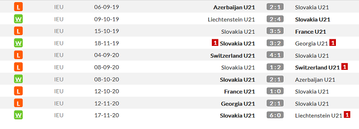 Trong khi đó, Slovakia U21 không thường xuyên có được niềm vui nơi đất khách. Họ toàn thua 3 trận sân khách vừa qua tại vòng loại U21 châu Âu 2021. 3 thất bại của Slovakia U21 có tổng tỷ số lên tới 2-7.