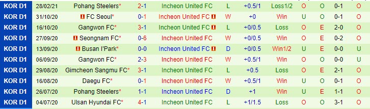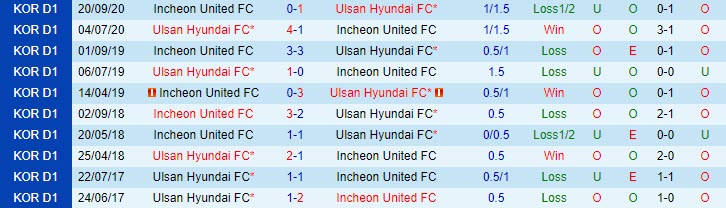 Phong độ và thống kê đối đầu Ulsan Hyundai - Incheon gần đây:
