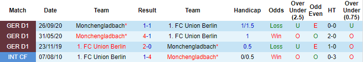 Phong độ và thống kê đối đầu Union Berlin vs M'gladbach