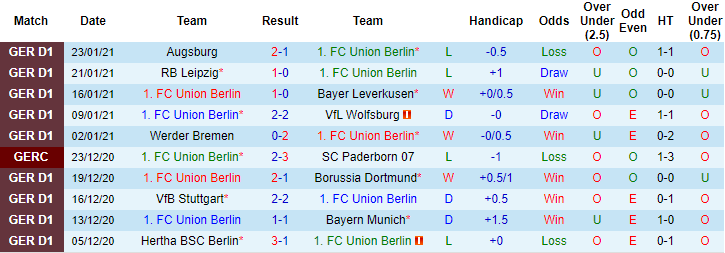 + Thống kê 10 trận gần nhất của Union Berlin