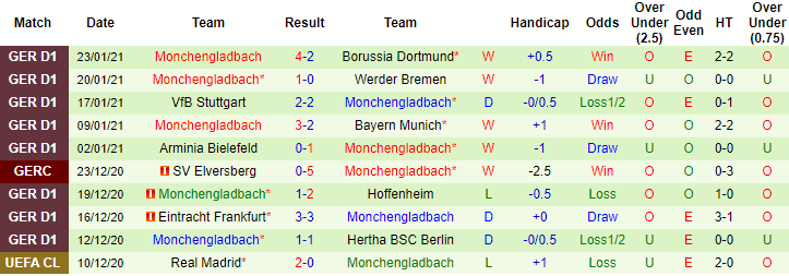 + Thống kê 10 trận gần nhất của M'gladbach