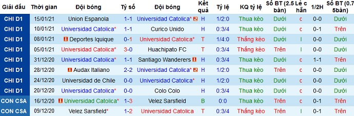 + Thống kê 10 trận gần nhất của Univ Católica
