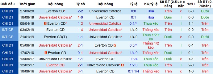 + Lịch sử đối đầu Univ Católica vs Everton