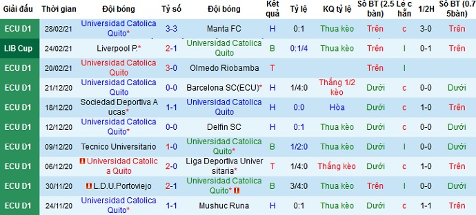 Tuy nhiên ở 5 trận gần đây Universidad Católica chỉ có được 1 trận thắng, 3 trận hòa và trận thua trước Liverpool ở lượt đi. Trên sân nhà Universidad Católica đang bất bại ở 5 trận gần nhất nhưng chỉ có được 2 trận thắng, để hòa 3 trận.