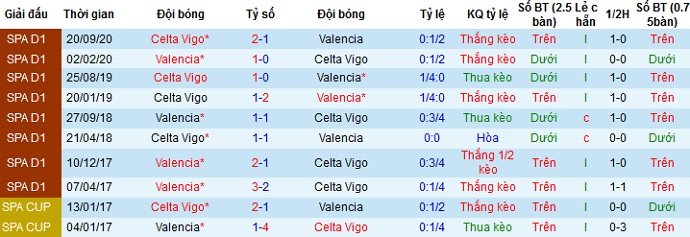 + Lịch sử đối đầu Valencia vs Celta Vigo
