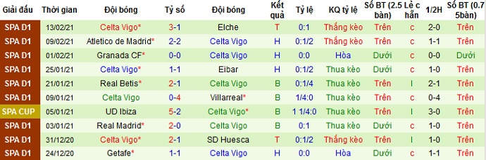 + Thống kê 10 trận gần nhất của Celta Vigo