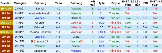 Trong 5 trận gần đây Valencia chỉ có được 2 trận thắng, 1 trận hòa và 2 trận thua, trong đó có trận thua trước Sevilla tại vòng 1/8 cúp nhà vua. Tính riêng tại La Liga, đội bóng cũng chỉ có được 1 trận thắng, 2 trận hòa và 2 trận thua trong 5 vòng đấu gần nhất. Trên sân nhà thành tích còn tệ hơn khi không thắng 5 trận liên tiếp.