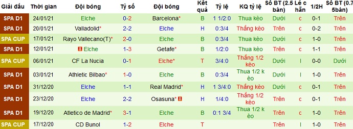 Trong 5 trận đấu gần đây Elche có được 1 trận thắng, 1 trận hòa và 3 trận thua. Thế nhưng trận thắng duy nhất của Elche là tại cúp nhà vua, trong khi tại La Liga đội bóng đã không thắng 13 vòng đấu liên tiếp. Dù vậy trên sân khách Elche cũng có được 3 trận hòa trong 5 lần du đấu gần nhất.