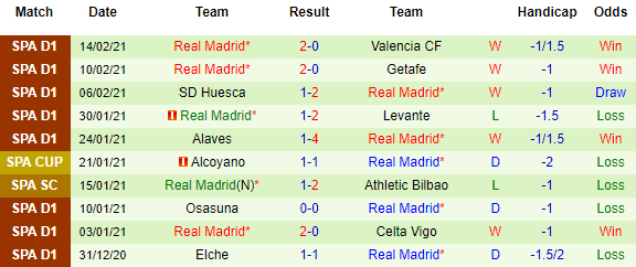 + Thống kê 10 trận gần nhất của Real Madrid