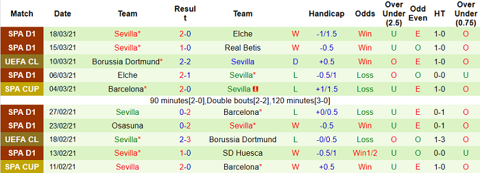 - Thống kê 10 trận gần nhất của Sevilla
