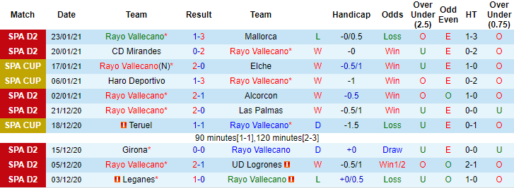 + Thống kê 10 trận gần nhất của Vallecano