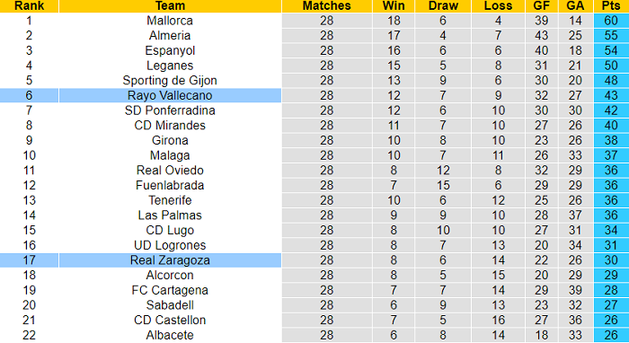 Chạm trán Zaragora hứa hẹn trở thành cơ hội để Vallecano tìm lại niềm vui. Lý do: Zaragoza không có được thành tích tốt trên sân khách.
