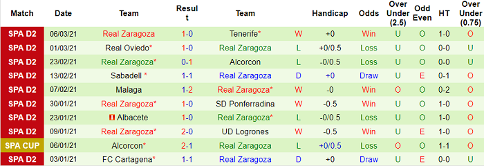 Zargoza là đội có tỷ lệ thắng kèo thấp nhất Segunda Division 2020/21. Tỷ lệ thắng kèo của Zaragoza tại Segunda Division mùa này chỉ ở mức 25.87%. Rõ ràng, Real Zaragoza không phải cái tên đáng tin cậy đối với giới đầu tư.