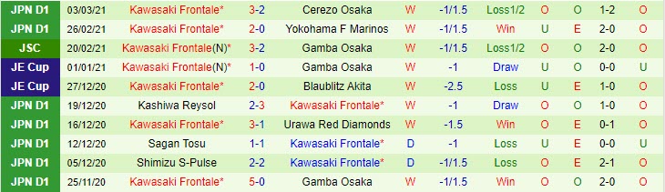 + Thống kê 10 trận gần nhất của Kawasaki Frontale