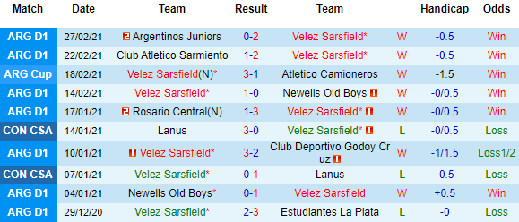 + Thống kê 10 trận gần nhất của Velez Sarsfield