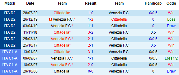 + Soi tỷ lệ kèo châu Á: Khả năng thắng kèo của Venezia thời gian qua là khá thấp. Họ thua chỉ số châu Á tới 3/4 vòng gần nhất, trong khi Cittadella chỉ thua tỷ lệ 1/8 trận mới đây. Ngoài ra thì 2 lần đối đầu vừa qua, Cittadella đều khải hoàn trước Venezia.