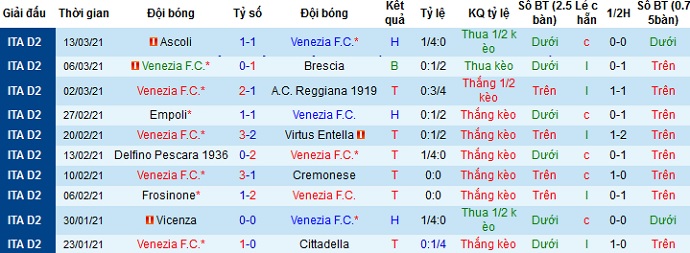 + Thống kê 10 trận gần nhất của Venezia