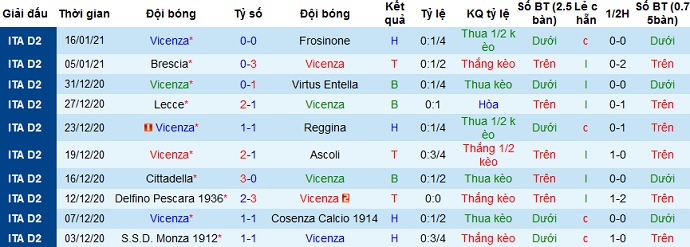 + Soi tỷ lệ kèo châu Á: Mặc dù được chơi trên sân nhà nhưng Vicenza vẫn đang bị đánh giá thấp hơn đối thủ nhưng kèo chấp cũng chỉ ở mức +0,25. Thành tích trên sân nhà của Vicenza không quá tệ trong thời gian gần đây nhưng đối thủ hầu như chỉ toàn các đội đang đứng ở nửa dưới của bảng xếp hạng.