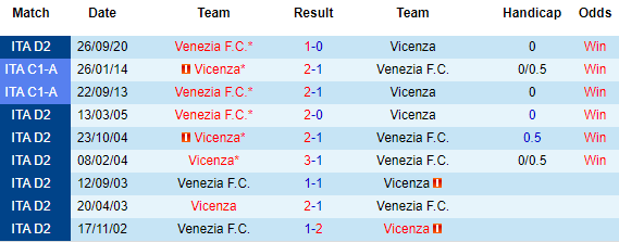 + Lịch sử đối đầu Vicenza vs Venezia